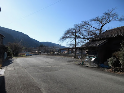 下泉(しもいずみ)駅、金谷起点27.4キロメートルです。地理院地図で調べると標高は213メートルでした。駅前の丸ポストの色がオレンジでなくて赤なのが、建物の古さと相まって良い感じです。
